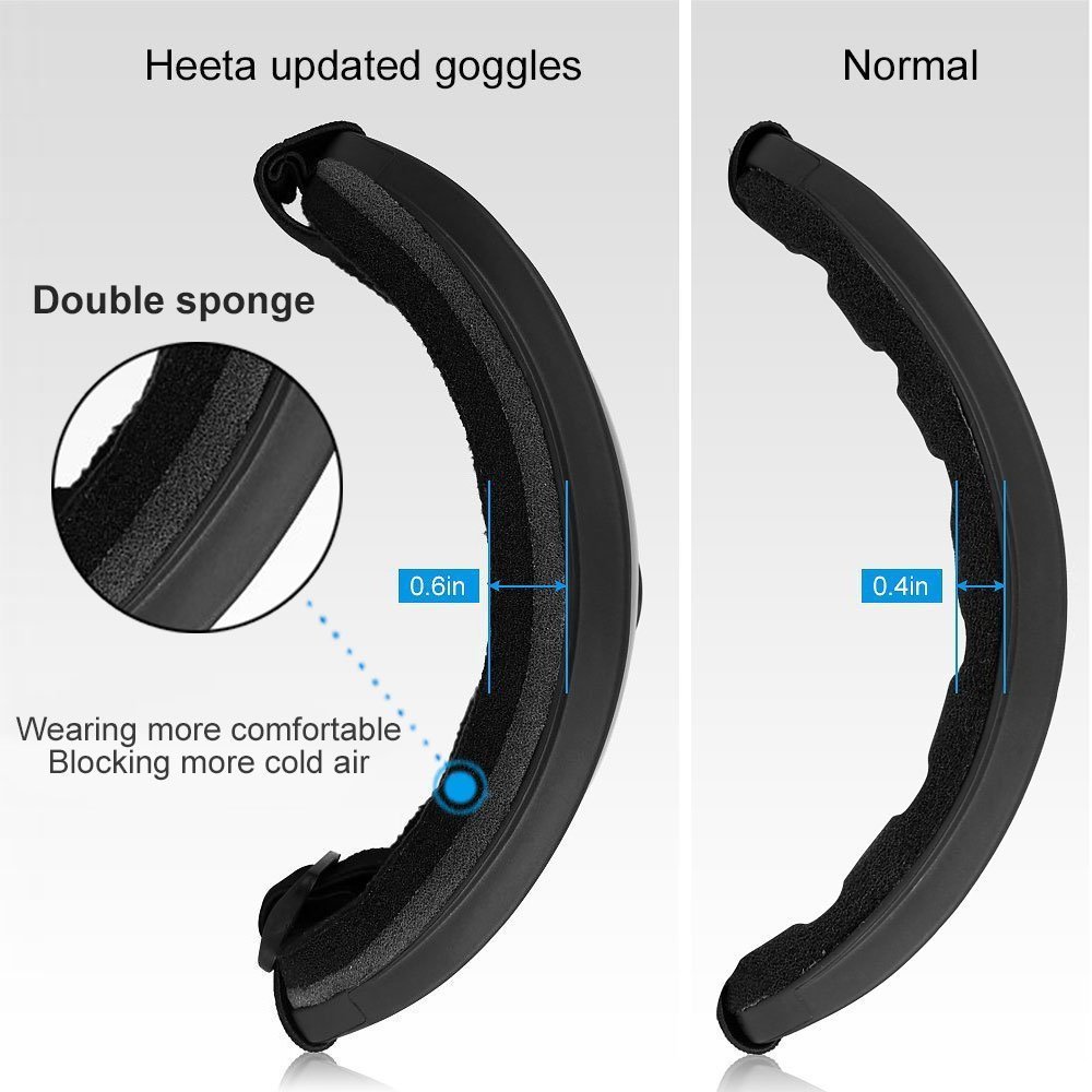 2 Pack safety ski goggles have thickened sponge on the frame and feature in durable ABS plastic and impact resistance PC lens, without fogging, effectively keep cold air out during skiing.