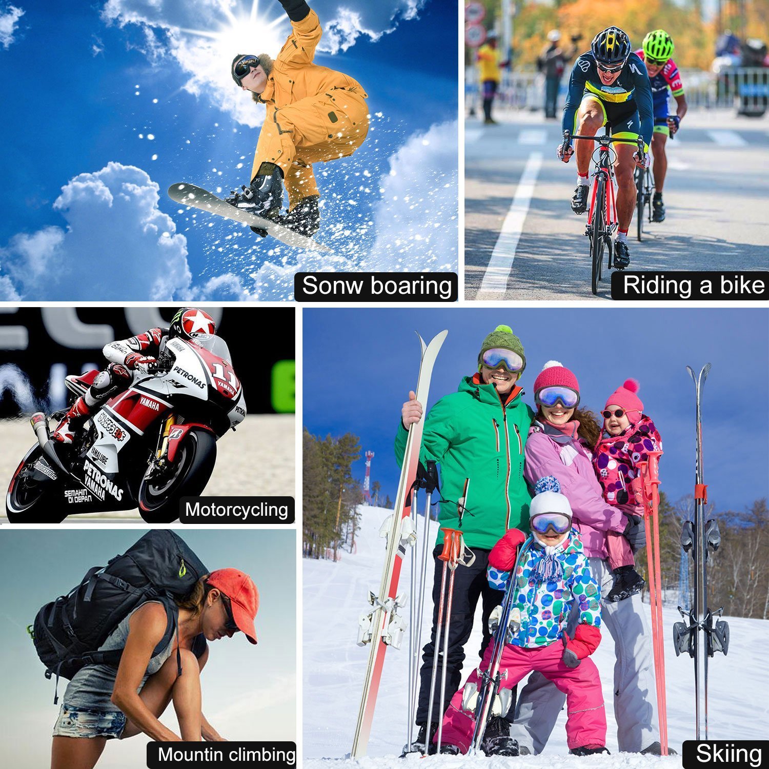 The snowboard glasses not only for skiing or snowboarding, it’s also perfect to use in most winter sports or outdoor activities like motorcycle, bicycle, snowmobile, skate, climbing and so on.