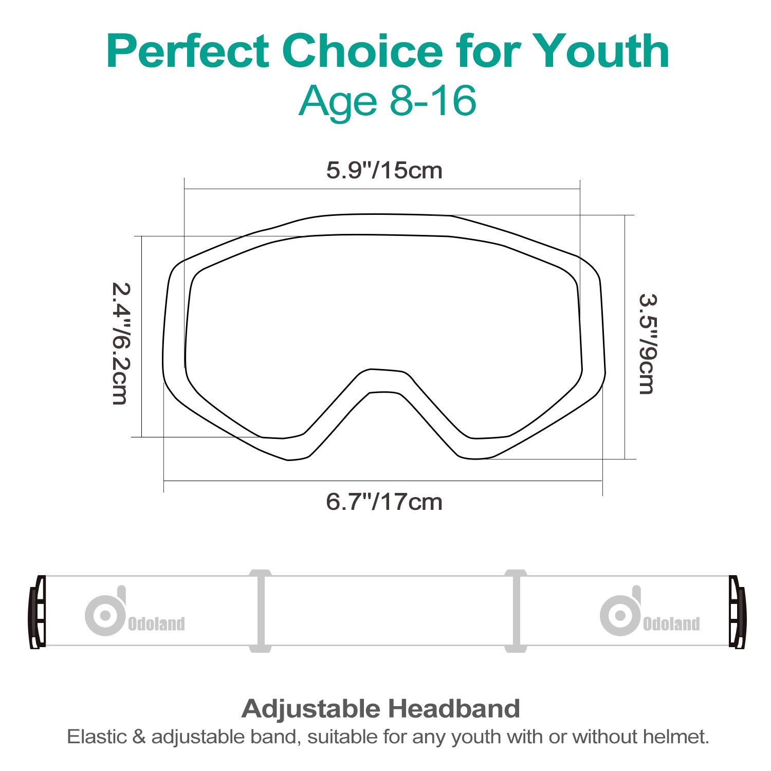 Odoland Snow Ski Goggles S2 Double Lens Anti-Fog Windproof UV400 Eyewear for Adult and Youth-Skiing, Snowboarding, Motorcycle Cycling and Snowmobile Winter Outdoor Sports Protective Glasses