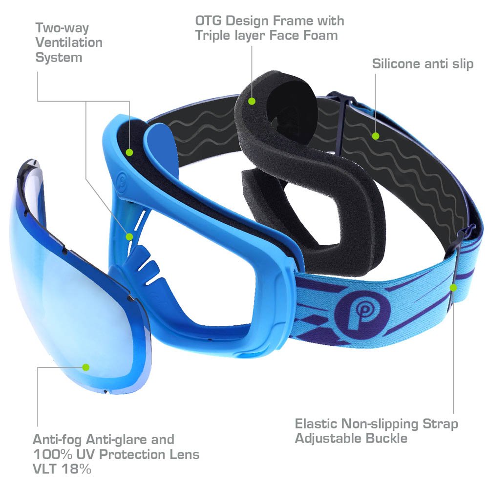 The Picador Ski goggles are made with ultimate comfort and visibility; featuring a panoramic dual layer anti fog detachable lens, providing an unobstructed field of view and maximize the protection for the Skier. These goggles feature UV protection and an anti-fog, double-layered lens to ensure the safety. With the design optimized for helmet compatibility wearer comfort is ensured.